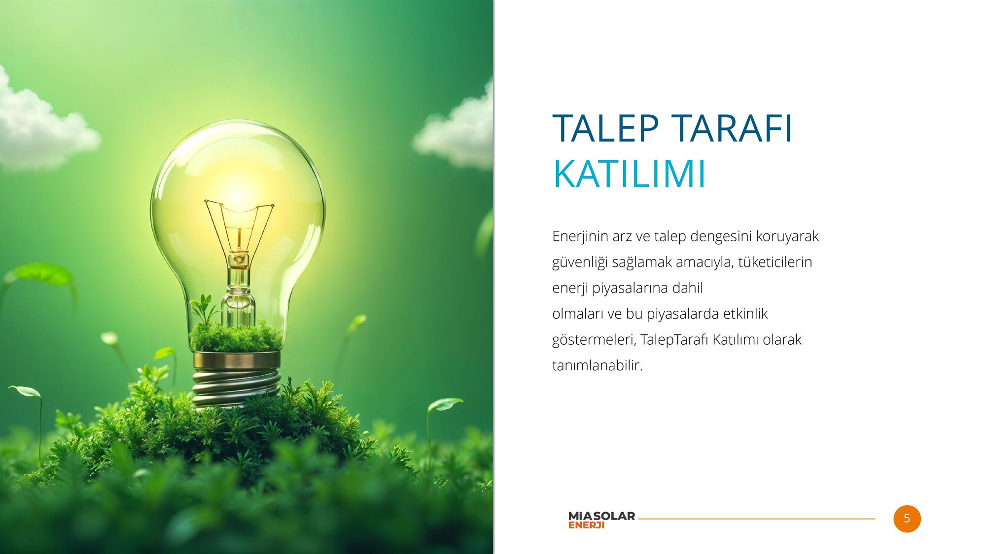 Talep Tarafı Katılımı, enerji tüketicilerinin şebeke üzerindeki yükü kontrollü şekilde azaltarak arz-talep dengesine katkı sağladığı ve bu katkının karşılığında finansal gelir elde ettiği bir piyasa modelidir.
