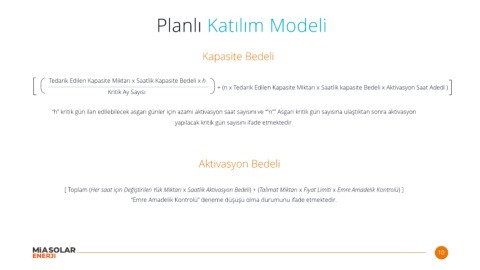 [ ( Tedarik Edilen Kapasite Miktarı x Saatlik Kapasite Bedeli x h ) ]